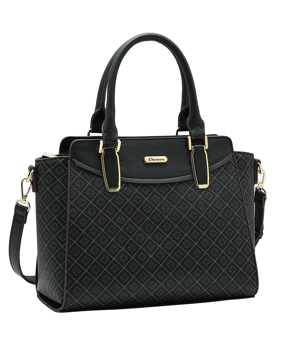 A Bolsa Elemento Gráfico Chenson na cor preta combina visual marcante e funcionalidade para o dia a dia. Com estampa geométrica sofisticada e estrutura firme, oferece amplo espaço interno, organização prática e versatilidade com alça de mão e opção transversal.