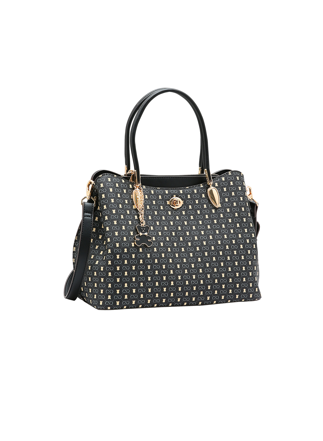 Essa bolsa traz um estilo clássico com um toque de charme sofisticado. Estampa com padrão marcante que reforça a exclusividade da marca. Os metais dourados, junto ao chaveiro de ursinho, agregam delicadeza e um toque lúdico. Possui alças de mão e alça transversal removível. Possui três divisórias e bolsos internos que facilitam a organização.. O seu formato estruturado combina muito com looks casuais e sociais com elegância.