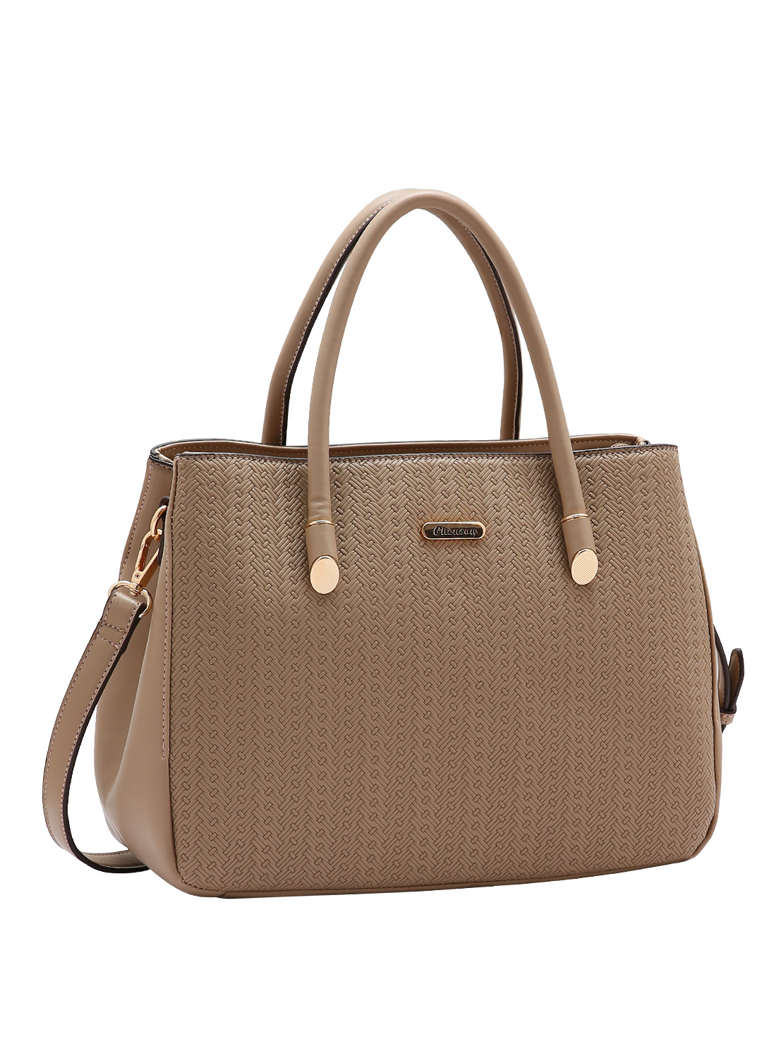 Frente com mini tramas (efeito cestaria fina) — visual sofisticado sem excesso de informação.