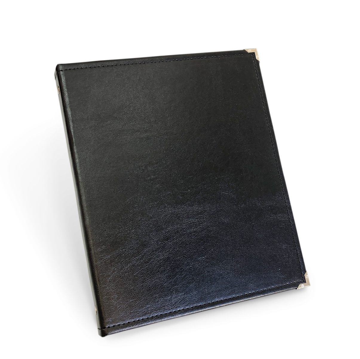 O acabamento em costura reforçada e cantoneiras de metal aumentam a vida útil da pasta, e também entregam um visual mais bem apresentado.