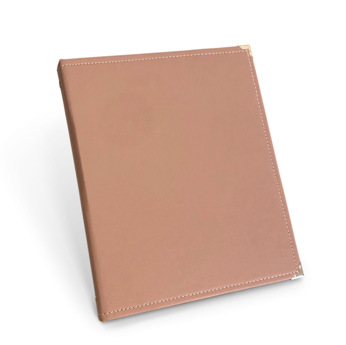 O acabamento em costura reforçada e cantoneiras de metal aumentam a vida útil da pasta, e também entregam um visual mais bem apresentado.